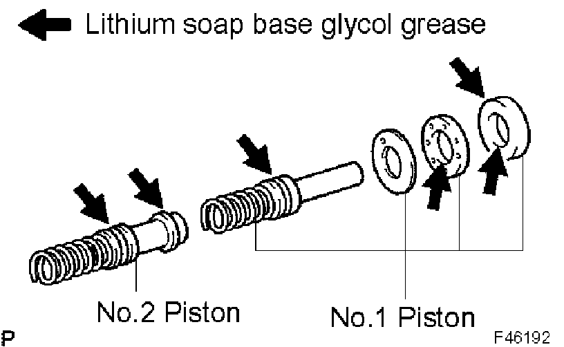 b. Apply lithium soap base glycol grease to new No.1 and No.2 piston sub-assy.