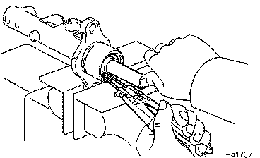 c. Push in the piston and remove the snap ring with snap ring pliers.