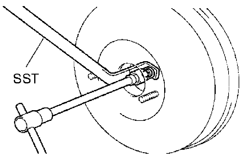 d. If the clearance is outside of the specified range, fix the push rod using SST and adjust the length of the protruding adjusting bolt.