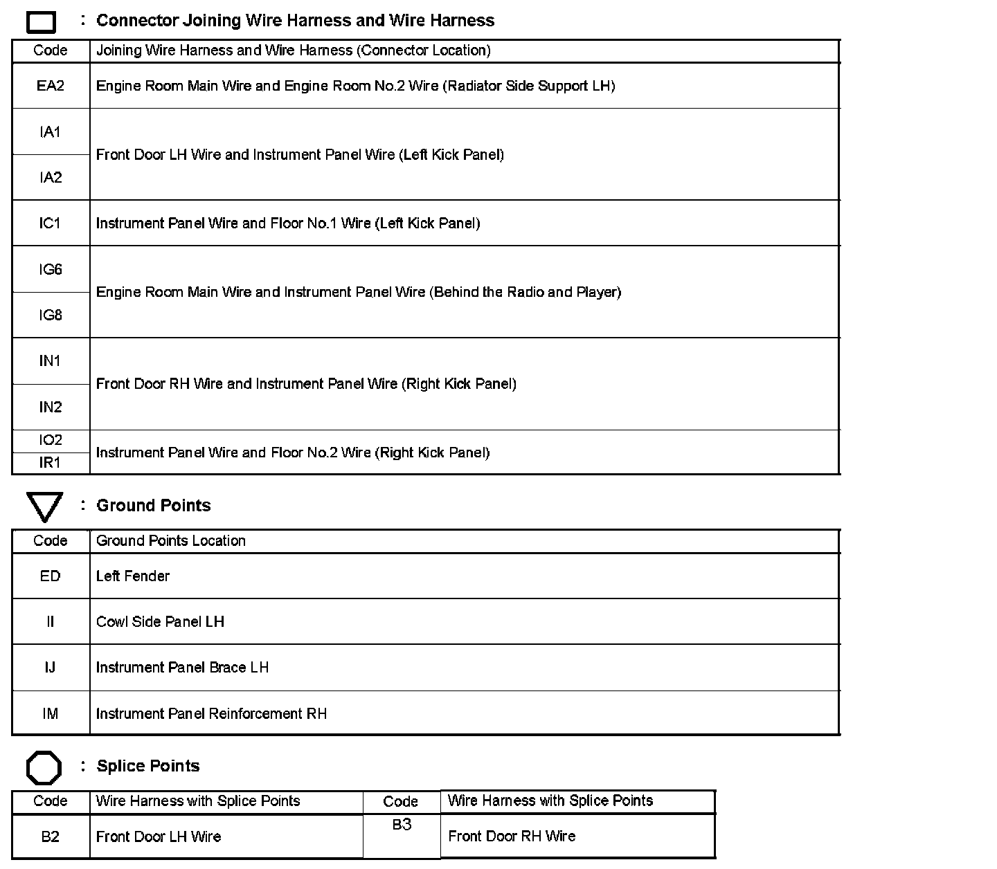 Locations: The locations of components, connectors, ground points, and splices referred to within these diagrams can be found at Vehicle Locations. Locations