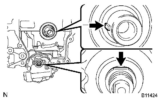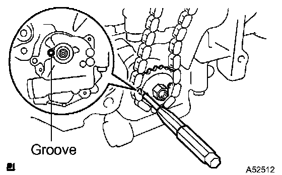 g) Align the adjusting hole of the sprocket with the groove of the oil pump.