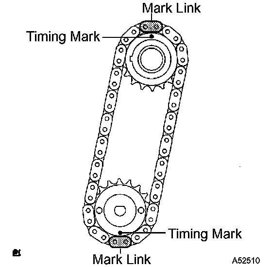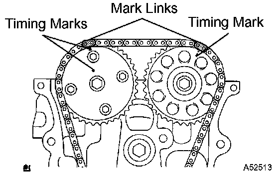 c) Align the mark links (yellow colored links) with the timing marks of the sprockets as shown in the illustration.