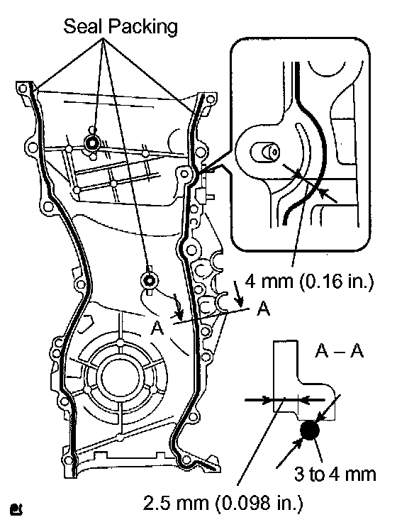 c) Apply seal packing in a continuous bead (diameter: 3 to 4 mm (0.12 to 0.16 inch)) as shown in the illustration.