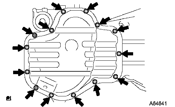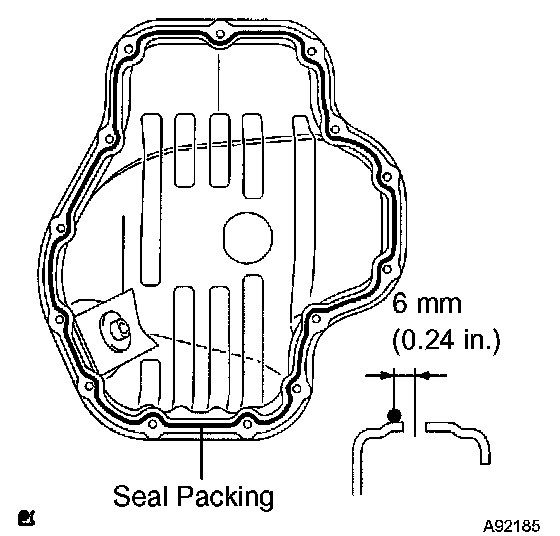 ^ Install the oil pan within 3 minutes after applying seal packing.