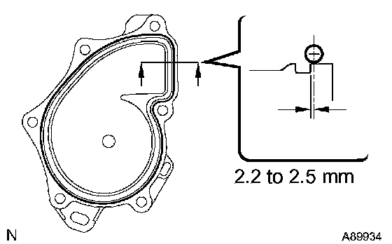 b) Apply seal packing in a continuous bead (diameter: 2.2 to 2.5 mm (0.09 to 0.10 inch)) to the outside edge of the water pump Seal packing: Part No. 08826-00100 or equivalent