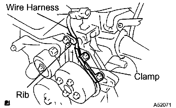 b) Confirm that the wire harness of the sensor is placed as shown in the illustration.