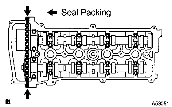 b) Apply seal packing to the 2 locations shown in the illustration.