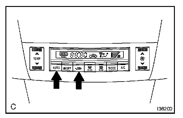 a. Turn the ignition switch to the ON position while pressing the A/C control AUTO switch and R/F (Recirculation / Fresh) switch simultaneously.