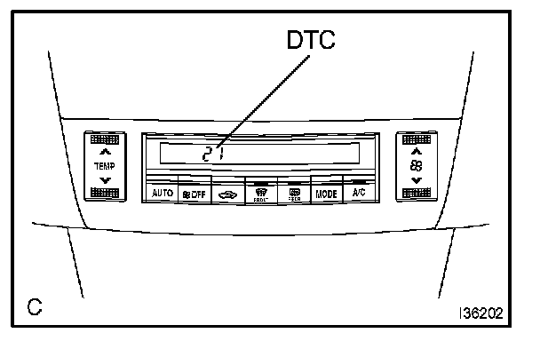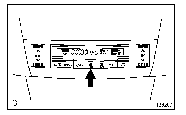a. Turn the ignition switch to the ON position while pressing the A/C control AUTO switch and R/F (Recirculation/ Fresh) switch simultaneously.