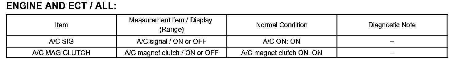 DATA LISTHINT: From the DATA LIST displayed on the hand-held tester, you can read the values of the displays, sensors, actuators and so on without parts removal. Reading the DATA LIST as the first step of troubleshooting is one way to shorten labor time.