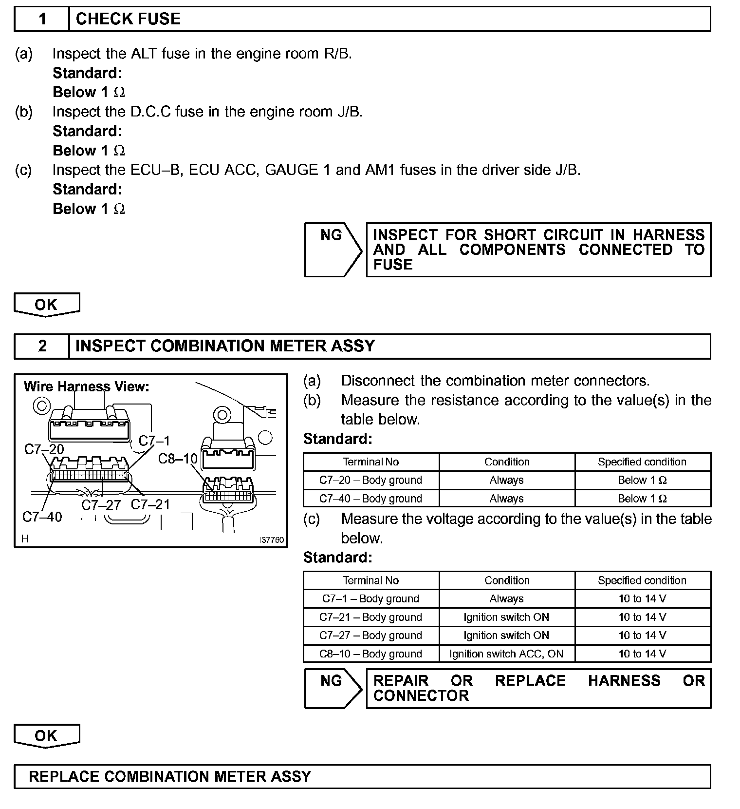ENTIRE COMBINATION METER DOES NOT OPERATE