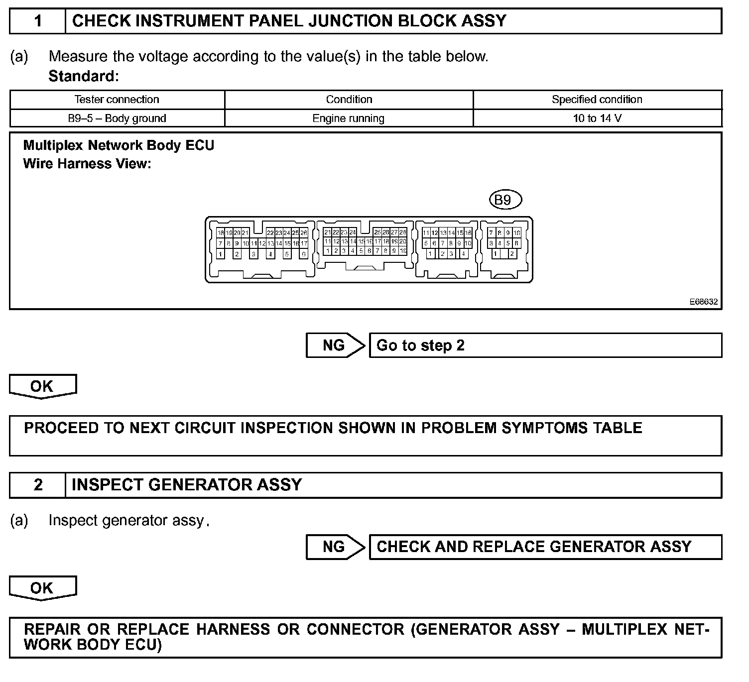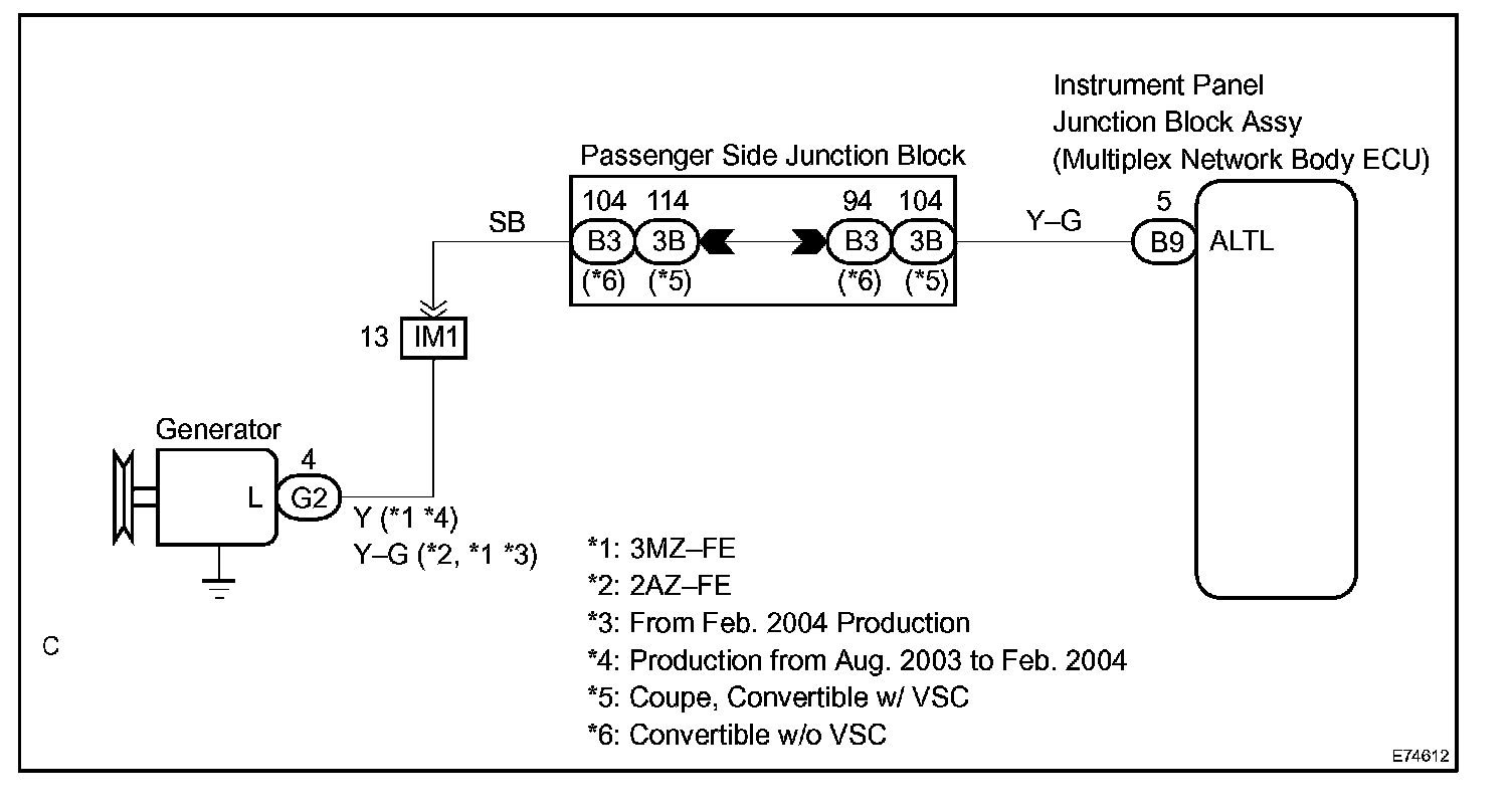The multiplex network body ECU receives an engine condition signal via a generator.