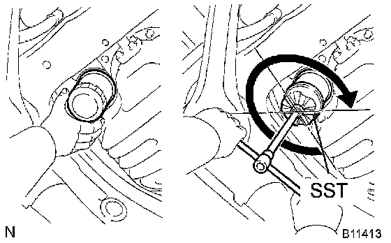 d) Using SST, tighten the oil filter an additional 3/4 turn.