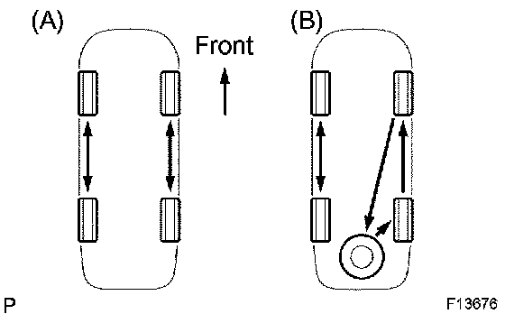 ^ Rotate as shown in (B) if the spare tire is included in the rotation.