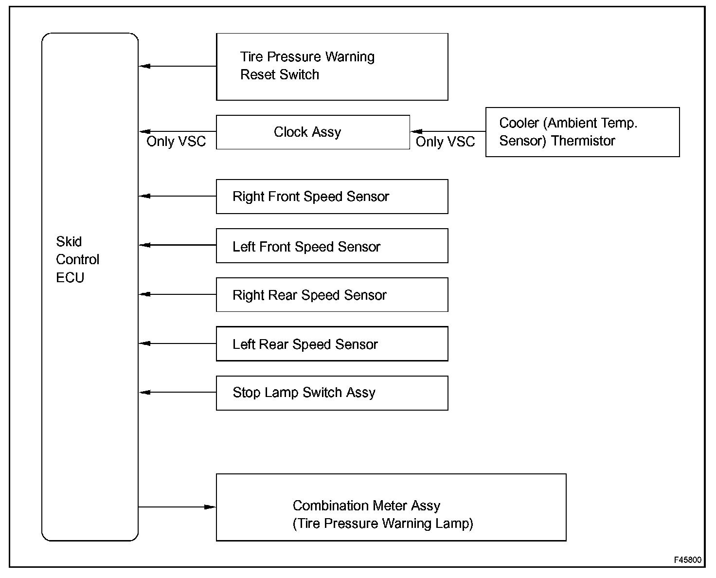 b. Tire pressure warning system is controlled by the ABS ECU.