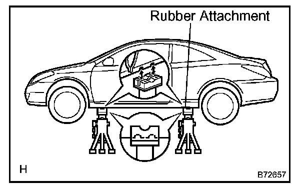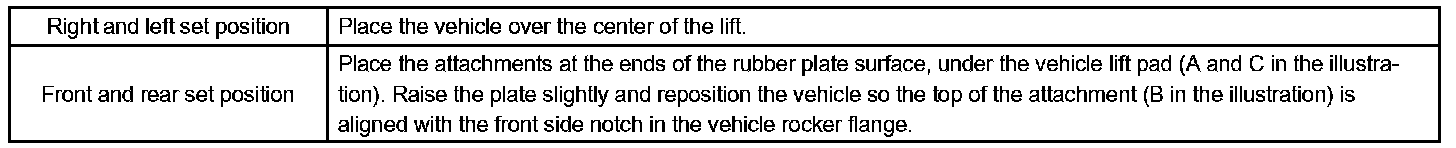 d. Set the vehicle on the lift as level as possible. Then match the groove of the cradle to the rigid rack support location.