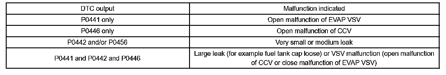 - Find the output DTC in the chart to determine which part of the EVAP system may be malfunctioning.