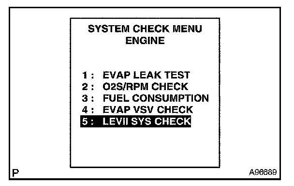 c. Enter the following menus: DIAGNOSIS/ENHANCED OBD II/SYSTEM CHECK/LEV SYS CHECK.