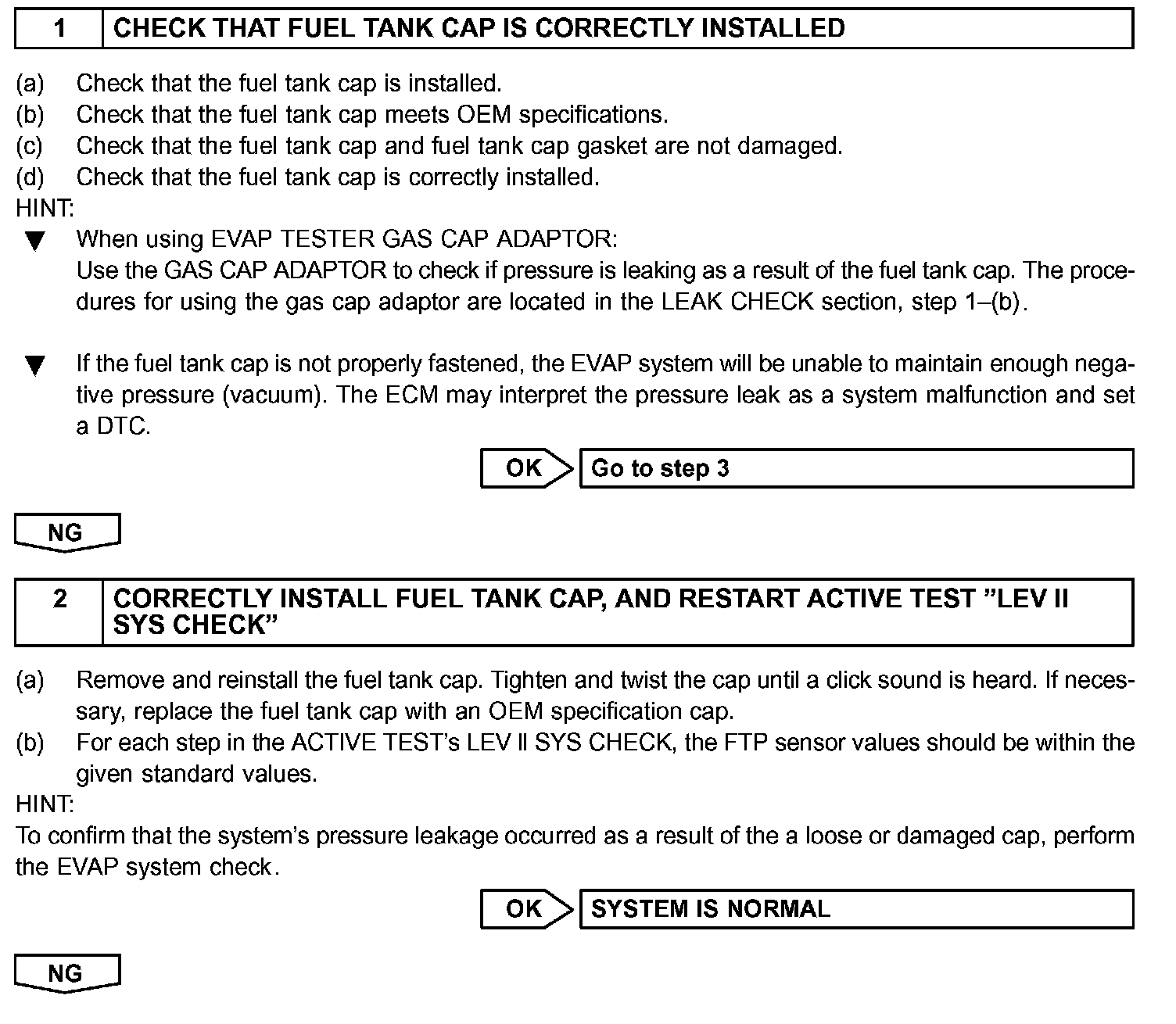 - When, during the LEV II SYS CHECK, the EVAP VSV is automatically closed or the LEV II SYS CHECK is automatically aborted.