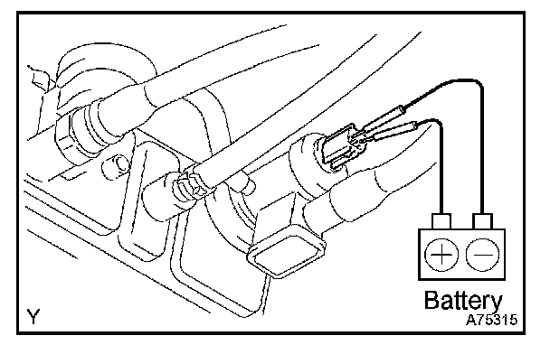 d. Connect the battery s positive (+) and negative (-) leads to the VSV for EVAP terminals.