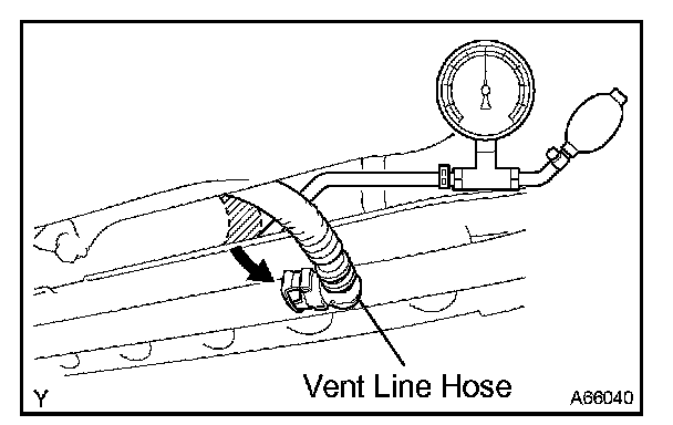 HINT: If the pressure does not decrease when the fuel tank cap is removed, the hose connecting the service port to the fuel tank is blocked.