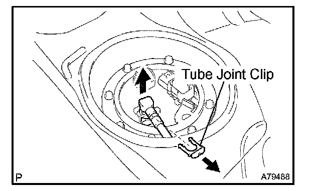 a. Remove the tube joint clip, and pull out the fuel pump tube.