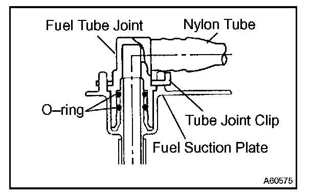 - After installing the tube joint clip, check that the fuel tube joint has not been pulled off.