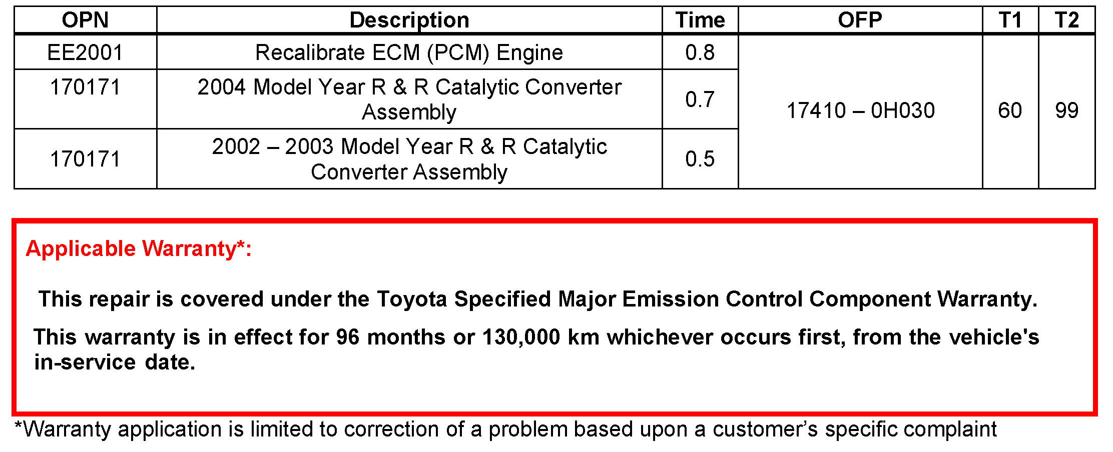 All 2002 - 2004 model year vehicles equipped with Manual Transmissions require replacement of the catalytic converter assembly only. Please refer to the catalytic converter replacement procedure.