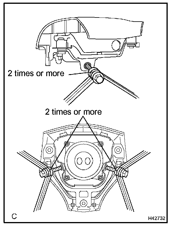 - Make sure that the wire harness is tight. If there is slack in wire harness, the horn button assy may become loose due to the shock when the airbag is deployed. This is highly dangerous.