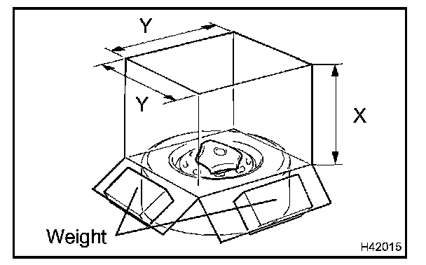 - When the dimension Y of the cardboard box exceeds the diameter of the disc wheel with tire to which the horn button assy is tied, X should be the following size.