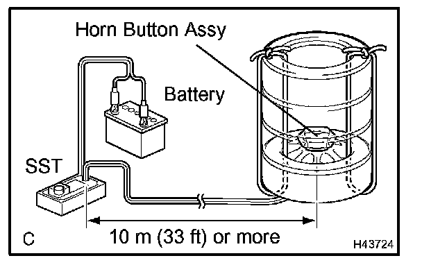 - When deploying the airbag, perform the operation at least 10 m (33 ft) away from the horn button assy.