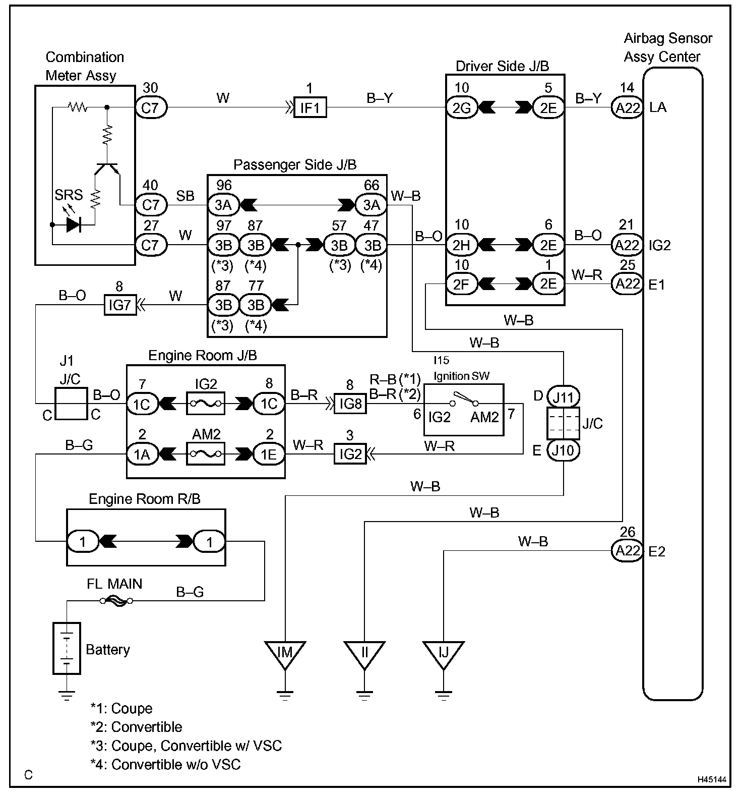 The SRS warning light is located on the combination meter assy.