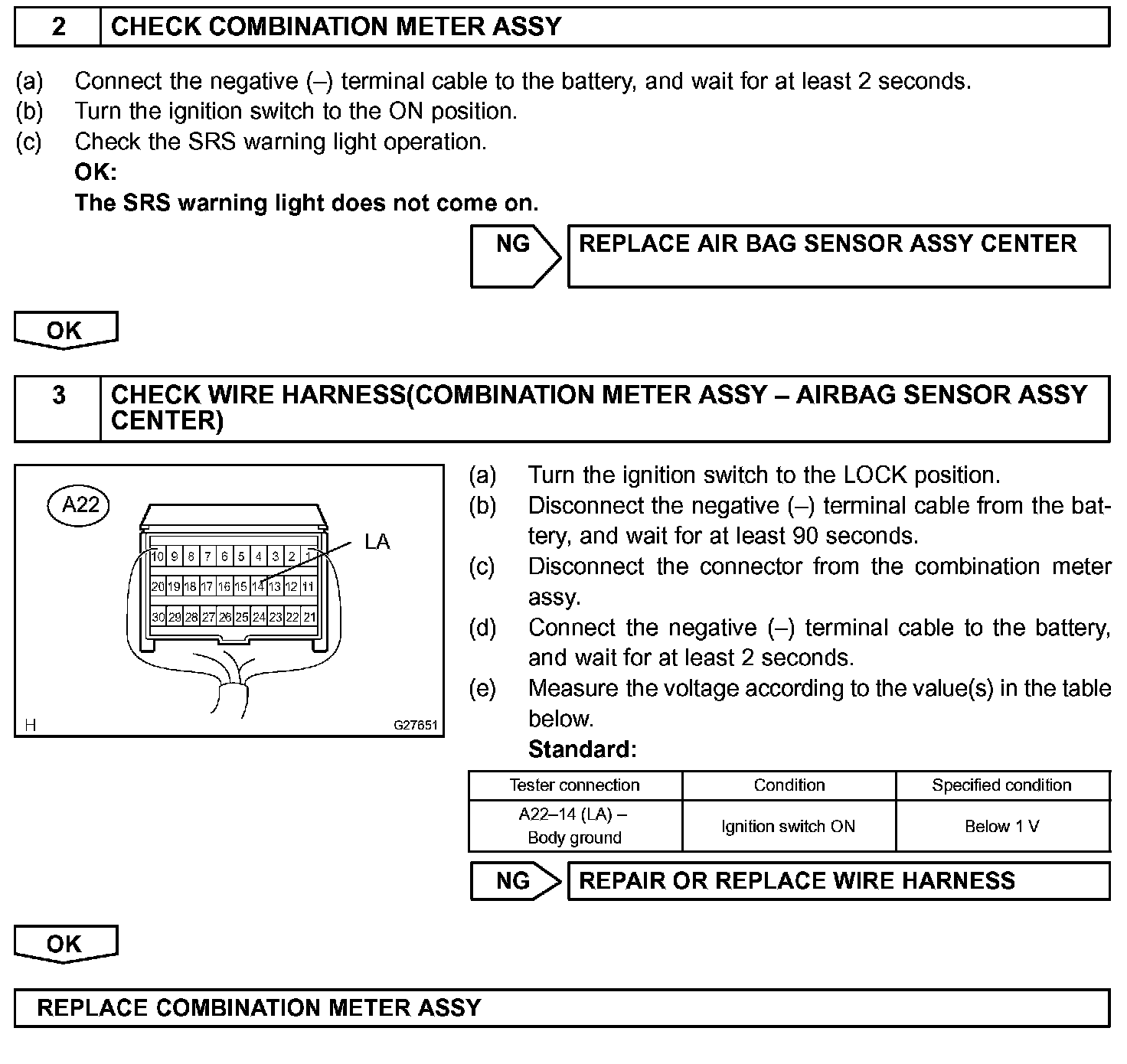 When terminals TC and CG of the DLC3 are connected, the DTC is displayed by blinking the SRS warning light.