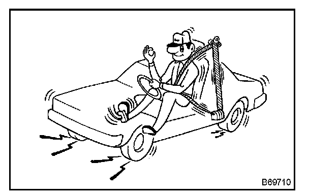 b. Drive the vehicle at 16 km/h (10 mph) and slam on the brakes. Check that the belt locks and cannot be extended at this time.