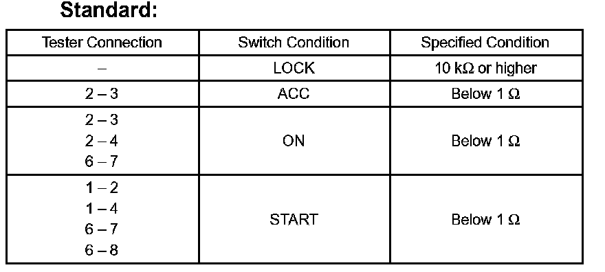 INSPECT IGNITION OR STARTER SWITCH ASSY
