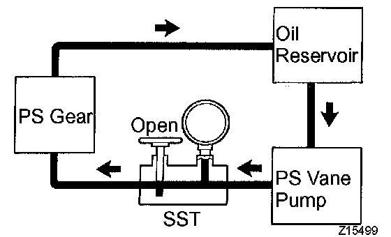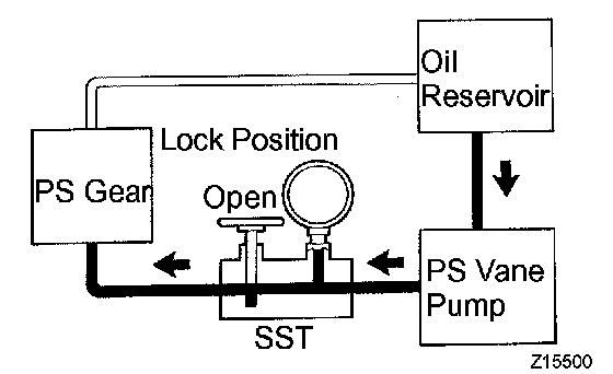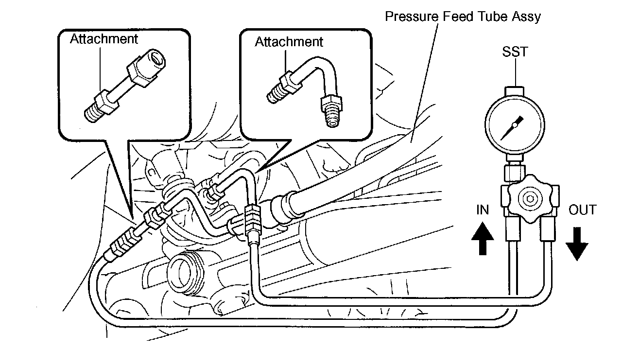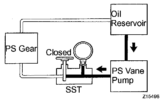 f. With the engine idling, close the valve of the SST and observe the reading on the SST.