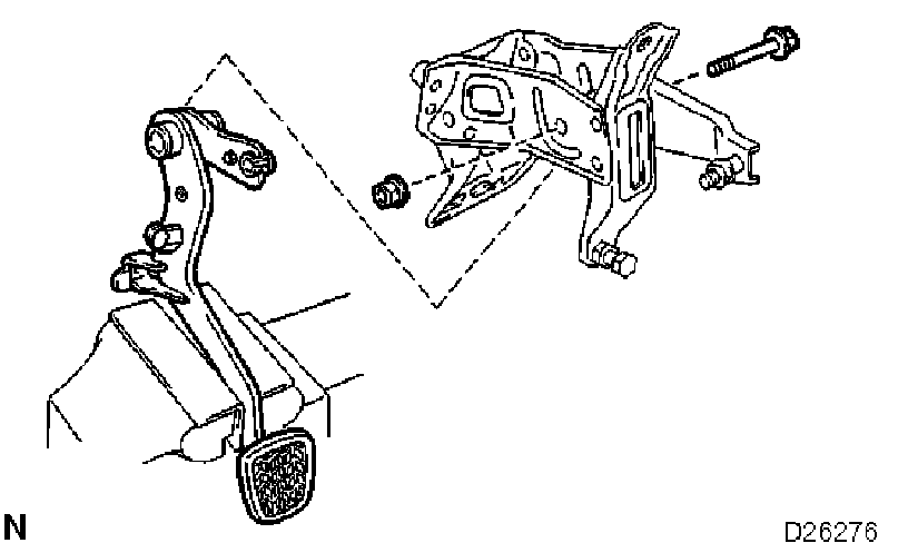 a) Install the clutch pedal sub-assy to the clutch pedal sup port with the bolt and nut.