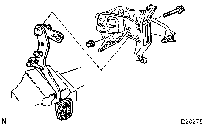c) Remove the bolt, 2 nuts and clutch pedal assy.