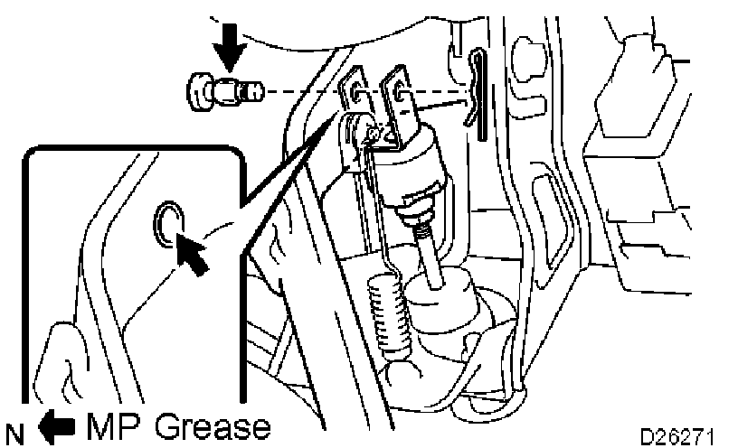 a) Apply MP grease to the contact surface of the hole pin and bush.