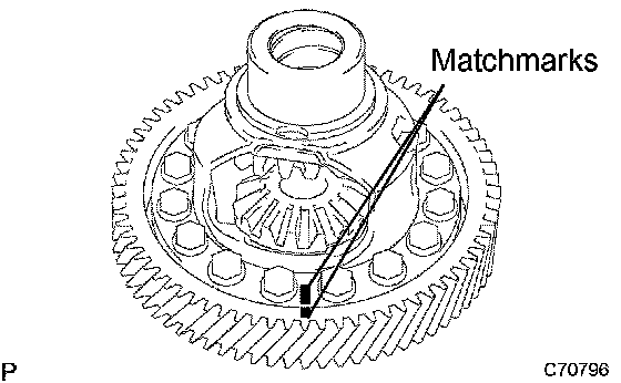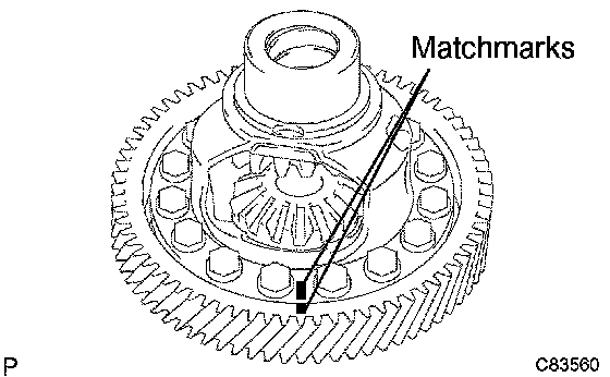 a) Put matchmarks on the front differential ring gear and the front differential case.
