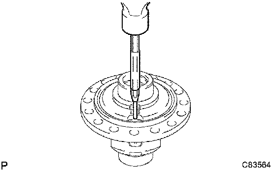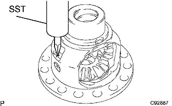 a) Using SST and a hammer, unstake the staked part of the front differential case.