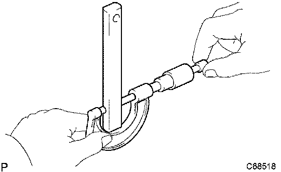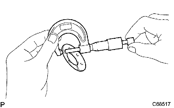 a) Using a micrometer, measure the outside diameter of the front differential pinion shaft No.1.