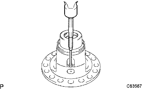 b) Using a pin punch and a hammer, remove the front differential pinion shaft straight pin from the front differential case.