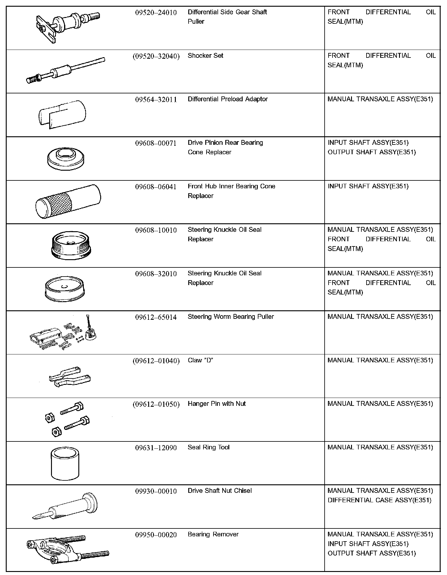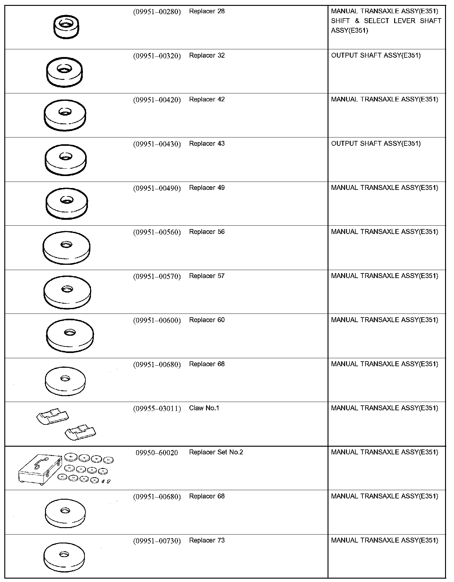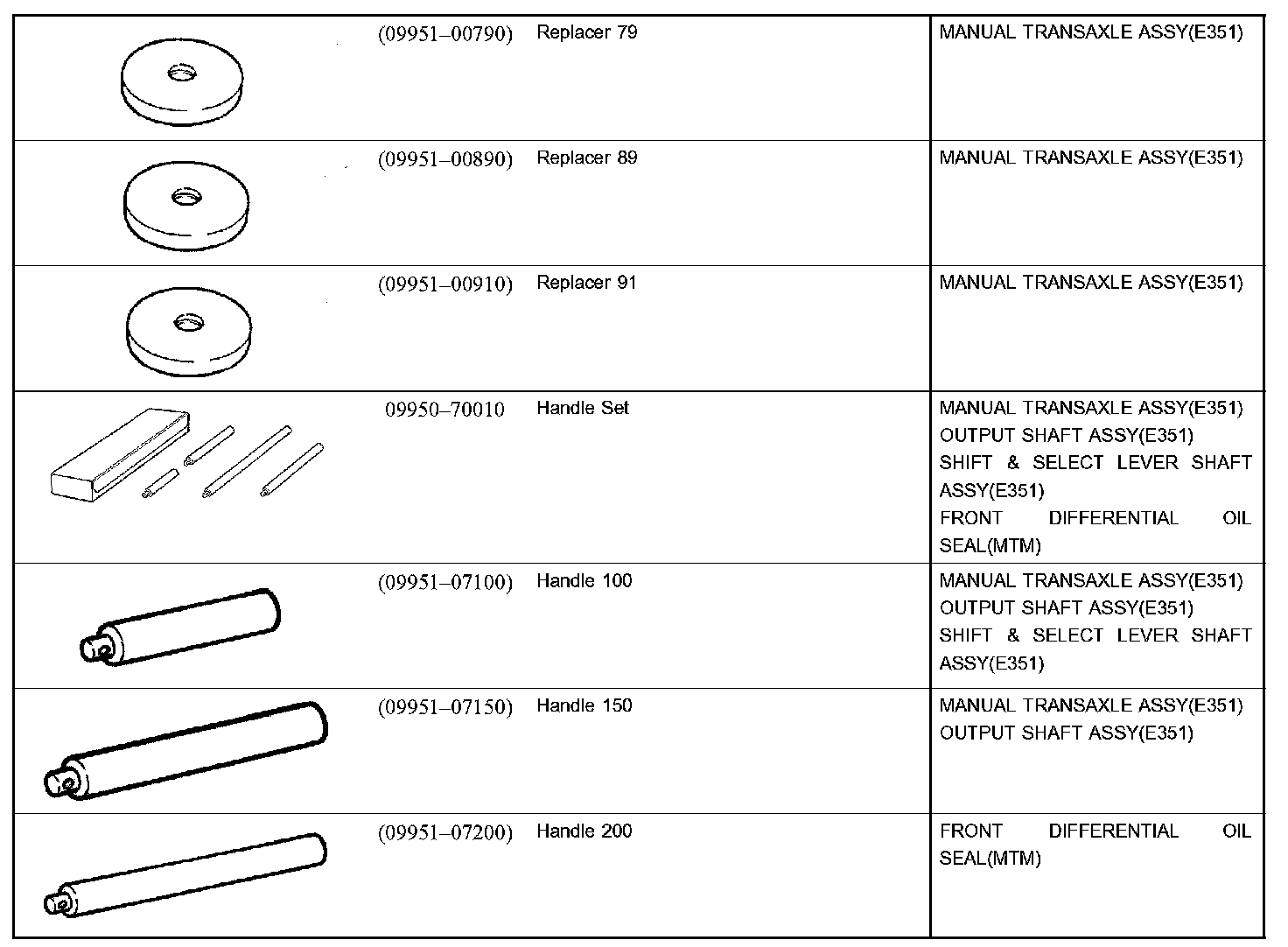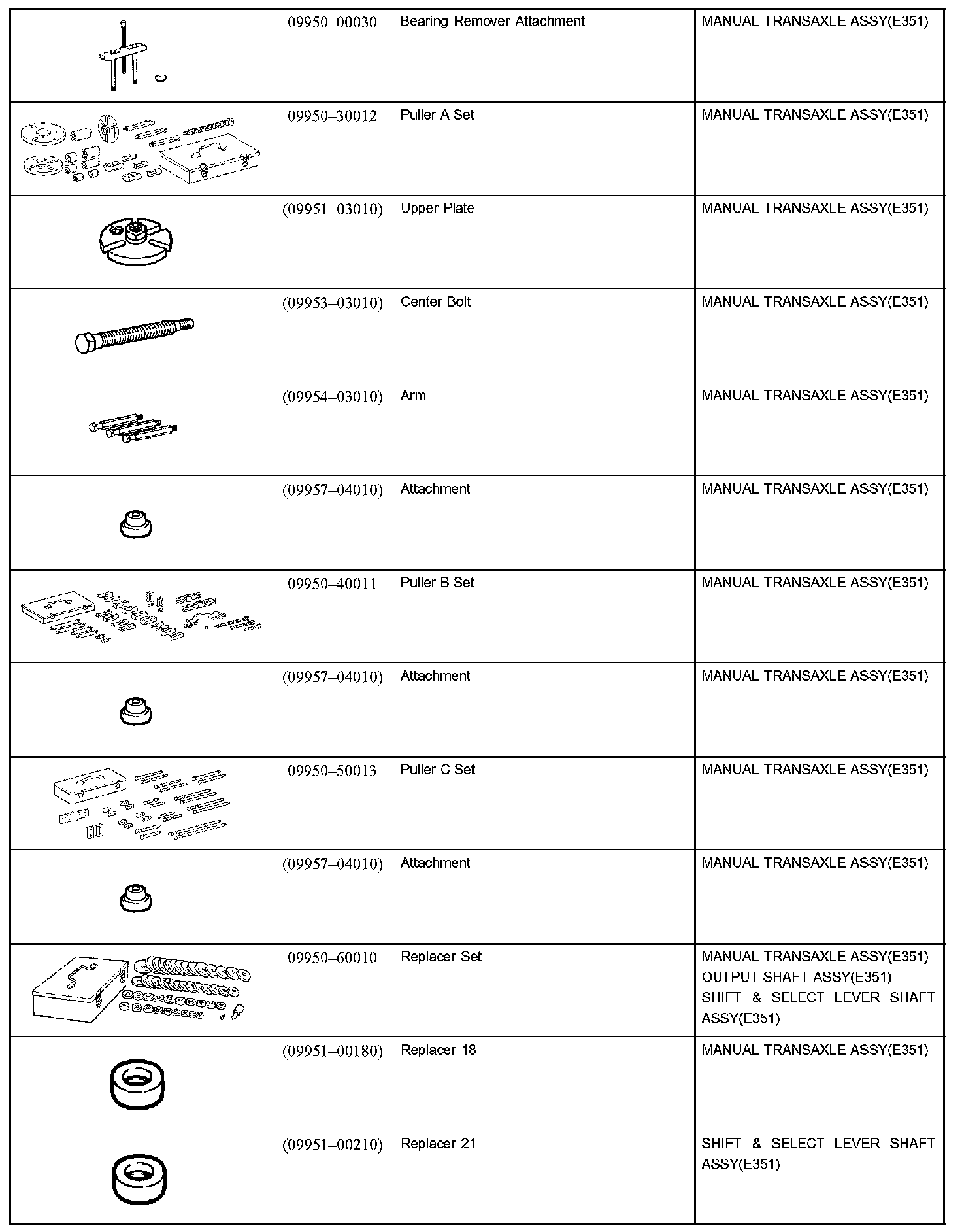 Manual Transmission/Transaxle - Recommended Tools Part 1: