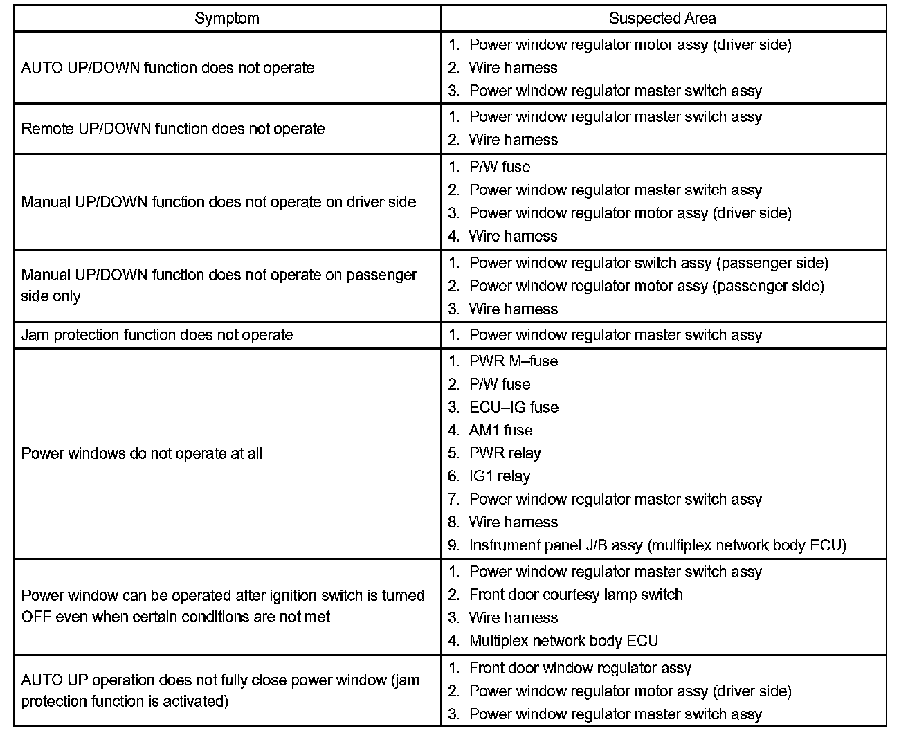 Problem Symptoms Table: