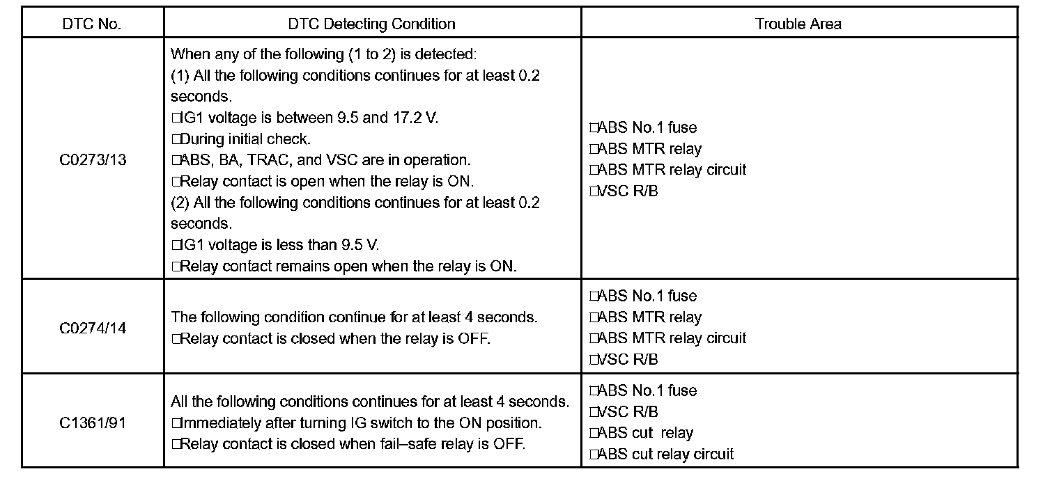 - The ABS motor relays consist of 2 relays are included in the VSC R/B.