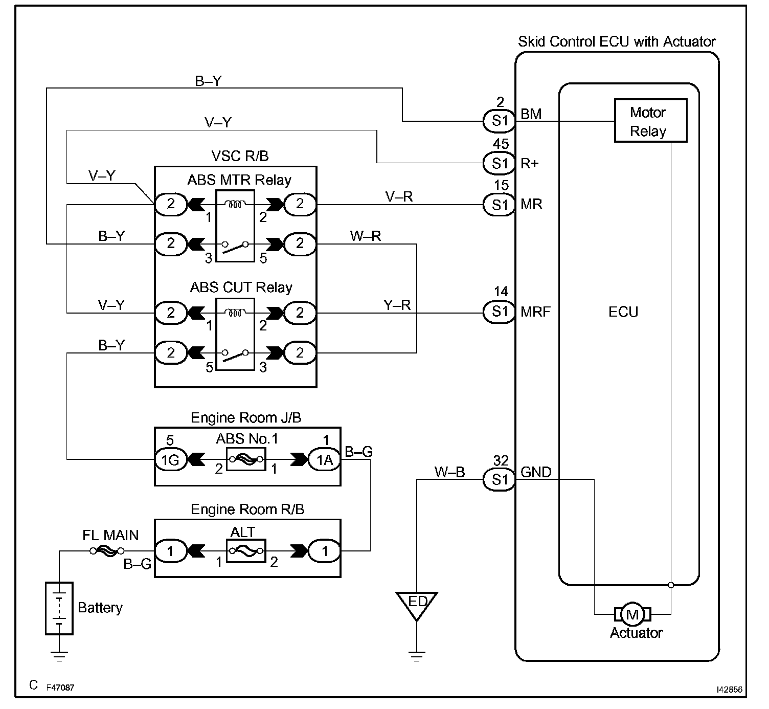 - While any of the ABS, BA, TRAC and VSC is operating, the skid control ECU (included in the actuator) turns the ABS motor relay on to operate the actuator pump motor.