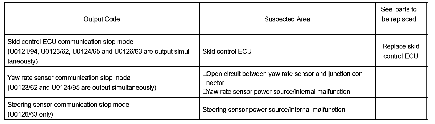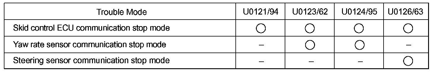 - U0121/94, U0123/62, U0124/95 and U0126/63 are the DTCs in the CAN communication system.