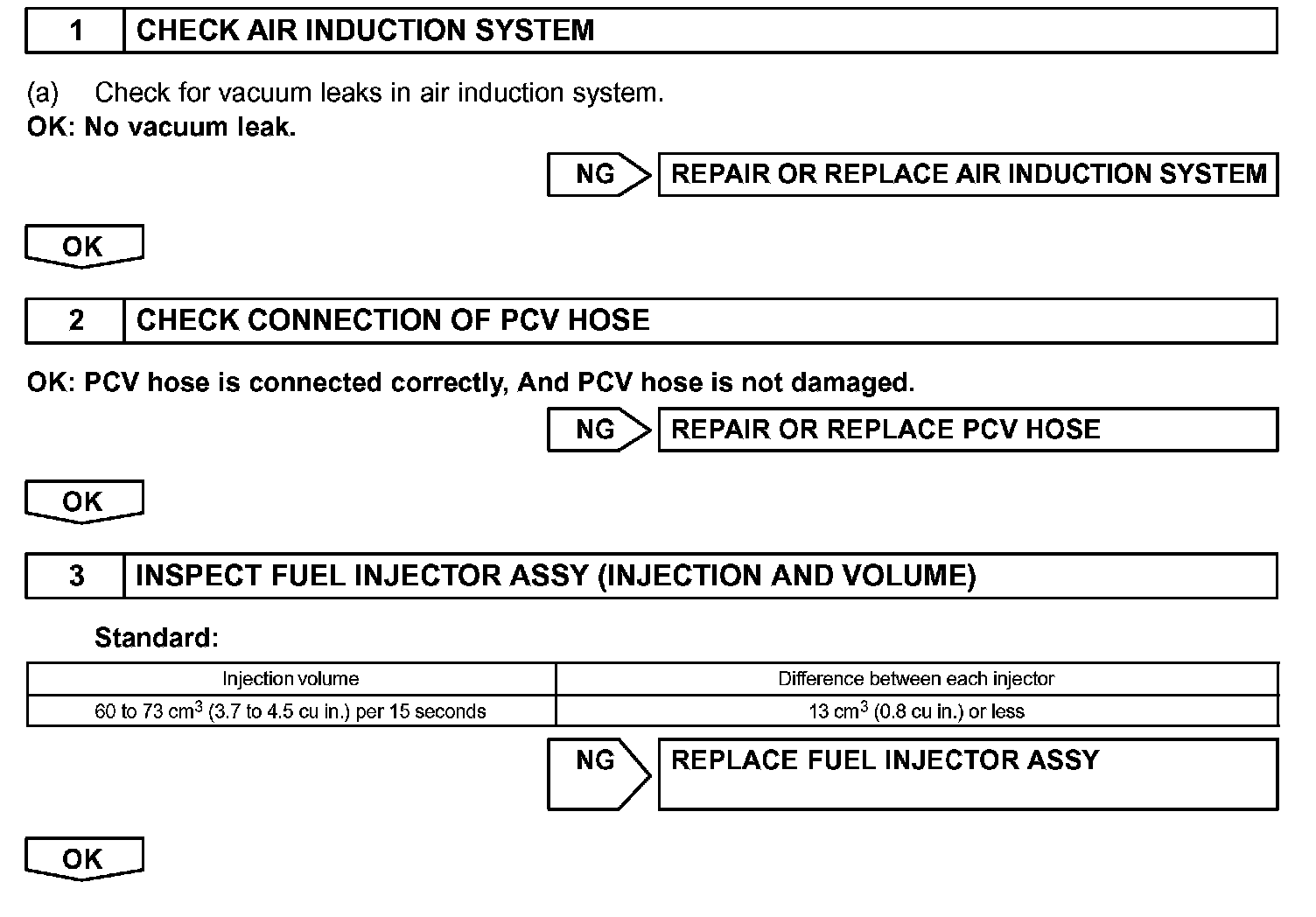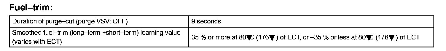 - If the total of the short-term fuel trim value and long-term fuel trim value is within ≤ 35 % (engine coolant temperature is more than 75°C (167°F)), the system is functioning normally.