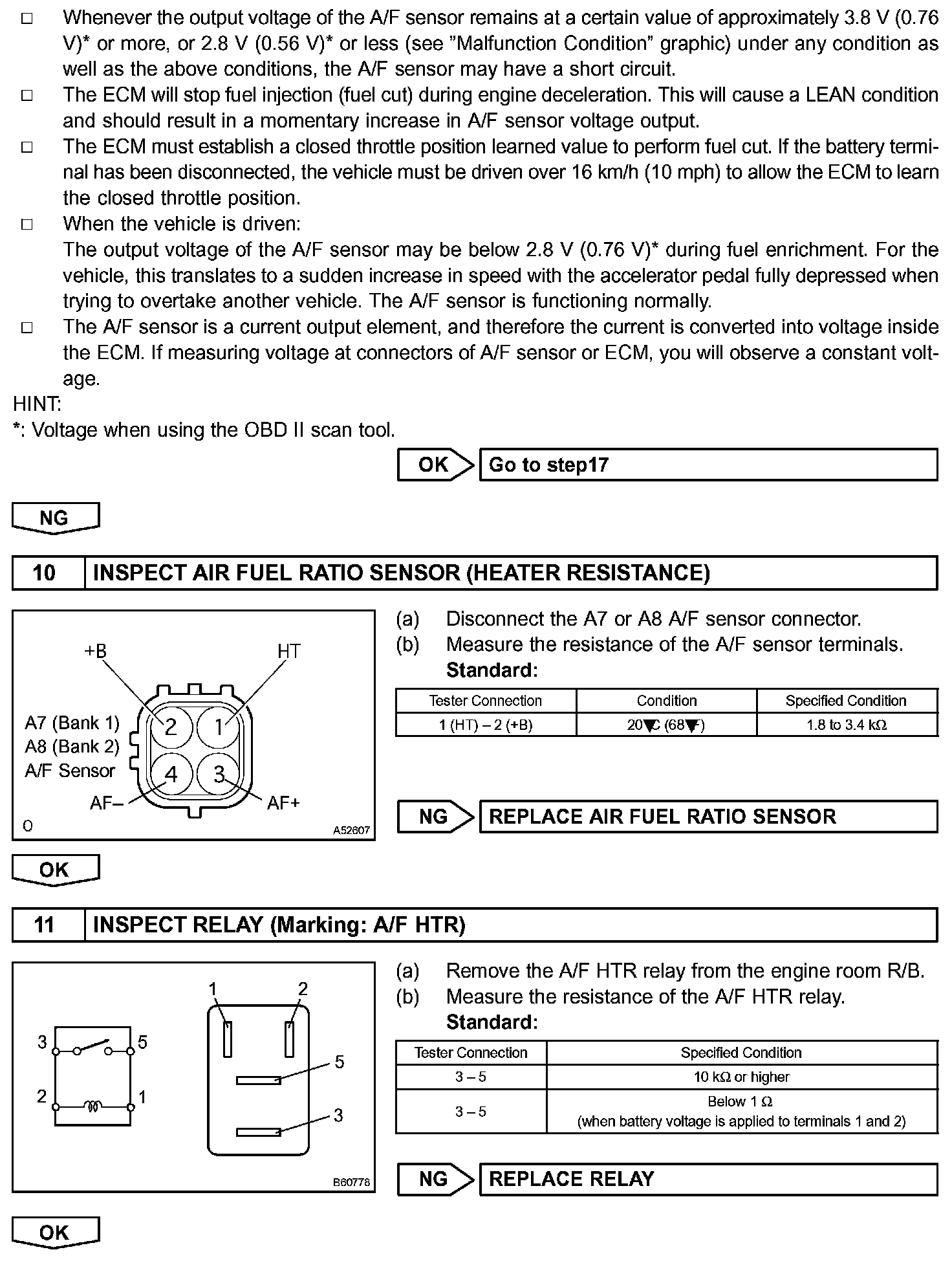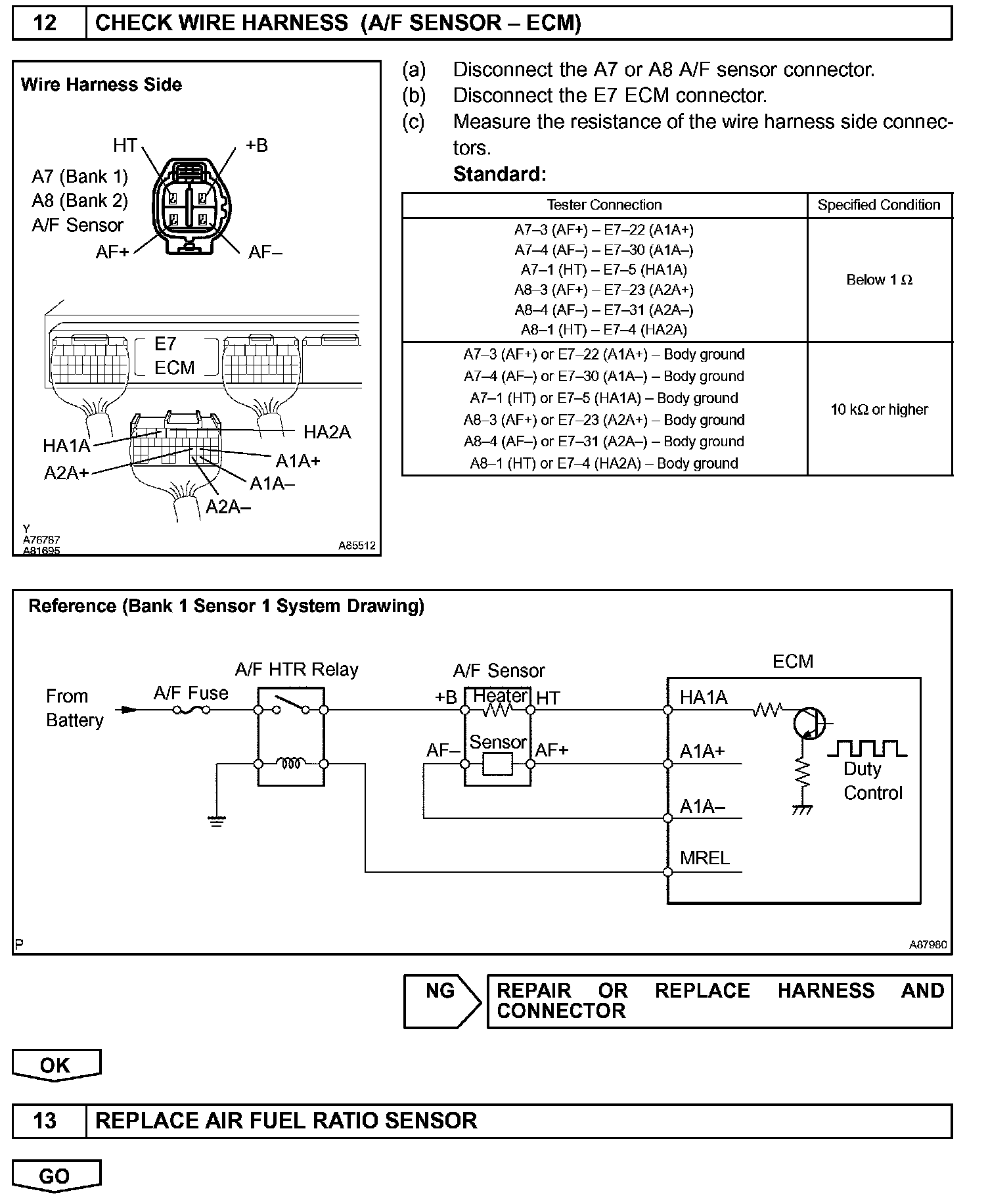The following A/F CONTROL procedure enables the technician to check and graph the voltage outputs of both the A/F sensor and the heated oxygen sensor.